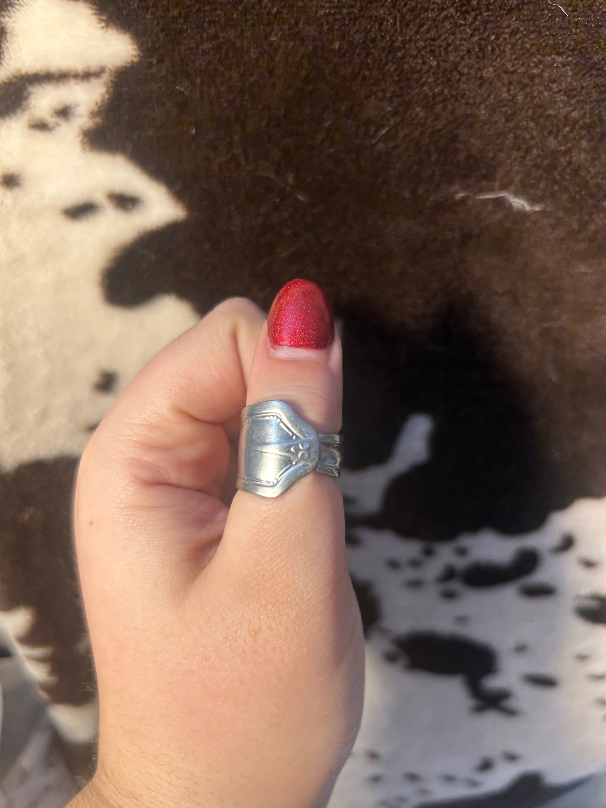 This stainless steel spoon ring with a beautiful engraving that catches eyes is sure to not turn your fingers green. It’s shaped by hand for a comfortable fit and made to hold up to everyday wear without tarnishing. Each ring is one of a kind, with its own subtle details that make it unique.